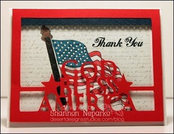 Shannon incorporated our challenge with a card drive for deployed Marines to make this fabulous patriotic card:
